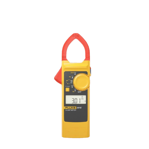 The Fluke 301C Clamp Meter has a lightweight and compact body, which allows you to carry it around in your pocket. The slim and thin jaw can easily clamp onto tightly packed wires. The Fluke 301C tests current, voltage, resistance, continuity, frequency (voltage and current), capacitance, and diode, etc.. You can handle more test needs with it. With the True-rms function, you can test complex signals more accurately, such as frequency conversion signals.