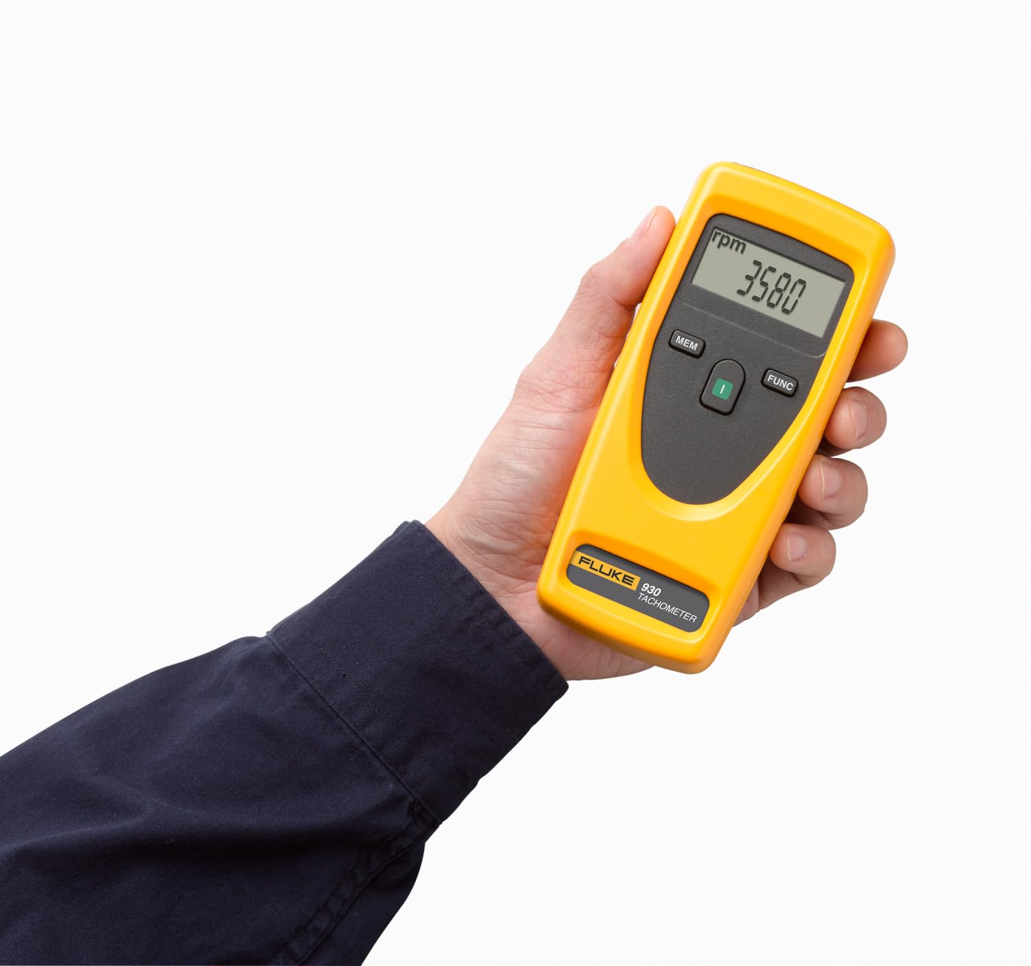 Fluke 930 is a handheld tachometer and is equivalent to a Fluke 931 with minimum configuration and can accurately measure the revolutions per minute (RPM) or surface speed and distance. With only the non-contact measuring function provided, it’s more affordable and offers consistent quality.