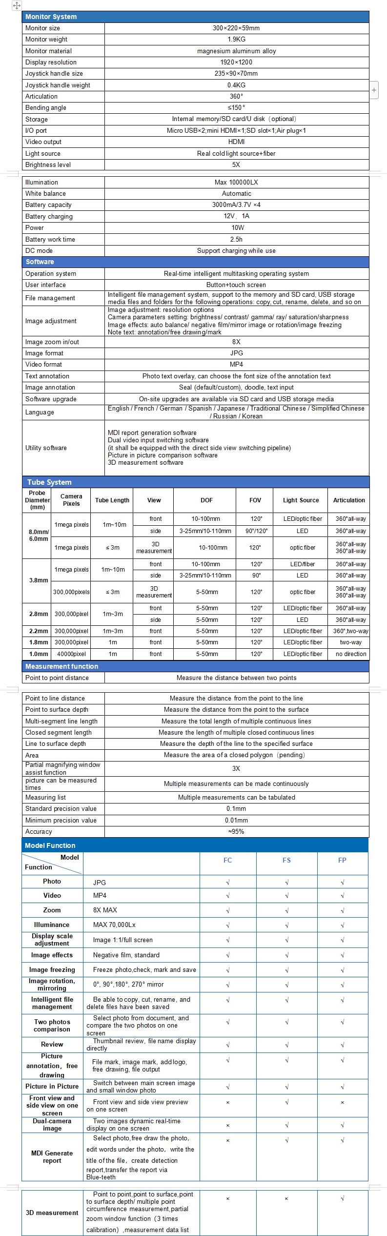Point-to-point/point-to-line/point to surface depth/ multiple point circumference measurement,measurement accuracy ≥ 95%