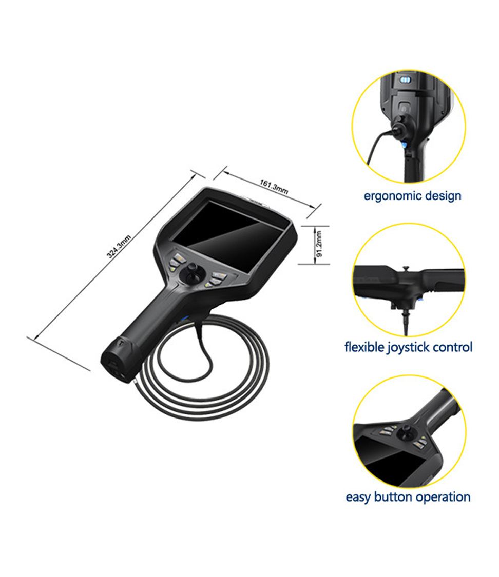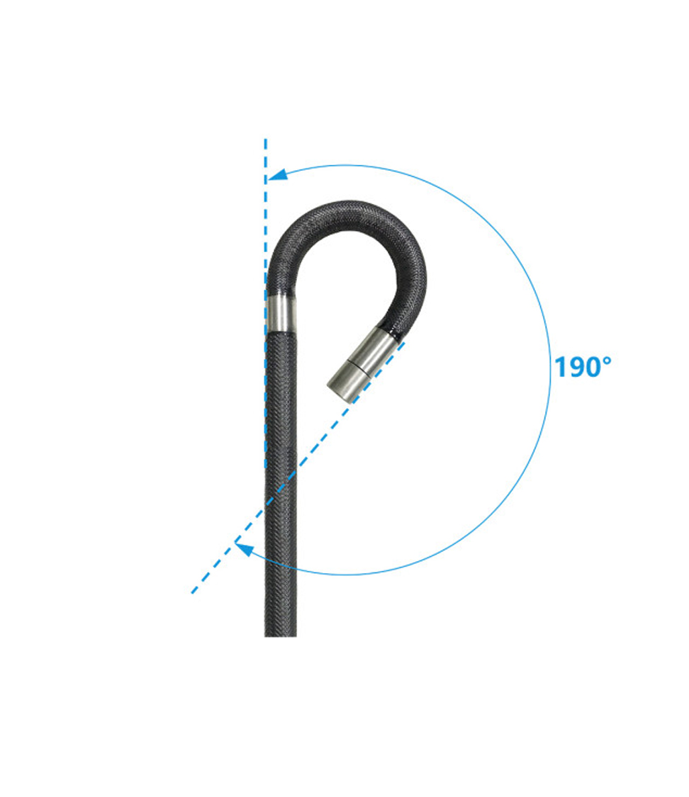 360° joystick-control articulation, damping type positioning design, precise probe locking technology, make the detection more accurate and efficient. Independently  developed technology of long-distance transmission ensures bending angle ≥100° ,