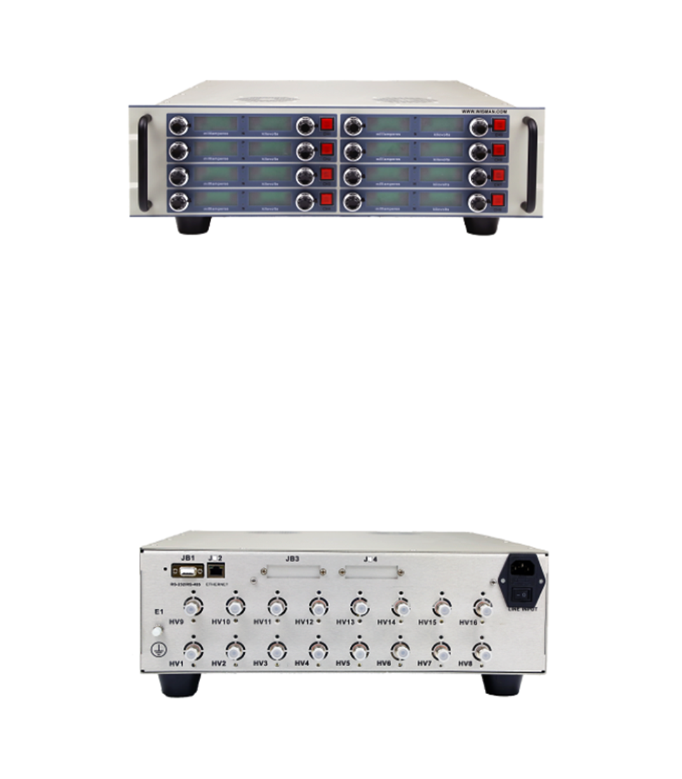 Wisman MSE series is a high-performance 19′ standard rack-mounted 8-channel output high-voltage power supply, 8-channel independent switch, 8-channel independent control, 8-channel independent display, 8-channel voltage and current independent display, and the number of display digits is 4.The MSE series has a complete protection system. It can be controlled remotely or locally, with voltage and current display on the front panel, over-voltage, over-current, short-circuit protection, arc-pulling, over-temperature protection and safety interlock at the high-voltage output end. Wide range of adjustment and flexible multiple optional functions.